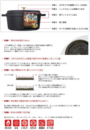 ■十分な厚みのある鋳鉄で、熱が逃げにくく、風味や栄養分も損ないません。