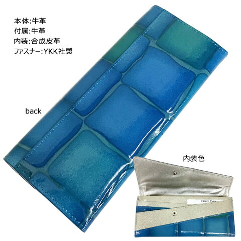 サイズ 横:19.0cm 高さ:9.0cm マチ:2.5cm 素材 本体:牛革 裏地:合成皮革 主な加工 ●たとかーふ(オリジナル皮革友禅染 加工) ●染料シュリンク(エンボス加工) ●エナメル加工 使用上の注意 ●濡れた場合は、すぐに乾いた布等で水分を拭き取ってください。