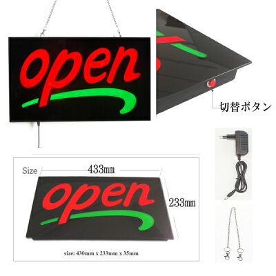 LED ネオン看板 オープン 23.3×43.3cm リモコン付 店舗用 OPEN 営業中 光る看板 サインボード アメリカン 雑貨 ネオンサイン おしゃれ 電光 壁掛け 室内 照明 文字 ライティングボード LED 屋台 カフェ 喫茶店 バー 居酒屋