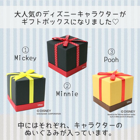 ディズニーキャラクター ぬいぐるみ付きギフトボックスディズニー人気キャラクター、ミッキー・ミニー・くまのプーさん3種類のキャラクターのジュエリーアクセサリー&腕時計用ギフトボックスです。