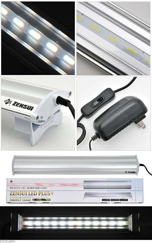 ZENSUI LED PLUS 45cm パーフェクトクリア適合水槽45cm枠付き水槽、フレームレス水槽に対応(淡水・海水両用)特長●赤・青・緑・白の光がすべて入っており、金魚や熱帯魚、アロワナや水草まで、すべての物の色彩をさらに演出します。